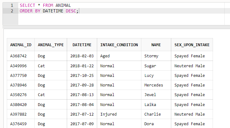 - ANIMAL의 DATETIME을 내림차순으로 정렬