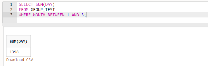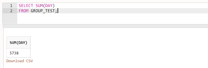 - GROUP_TEST의 DAY의 모든 값들의 합계 : 5738