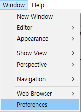 1. 이클립스 상단 탭에서 Window - Preferences를 클릭한다.