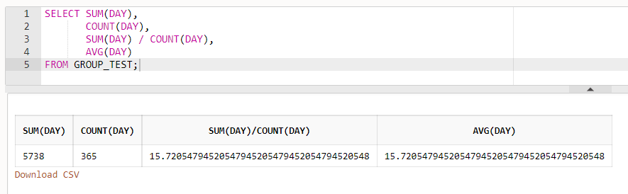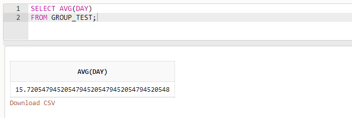 - GROUP_TEST의 DAY의 모든 값들의 평균값 : 15.72054..........
