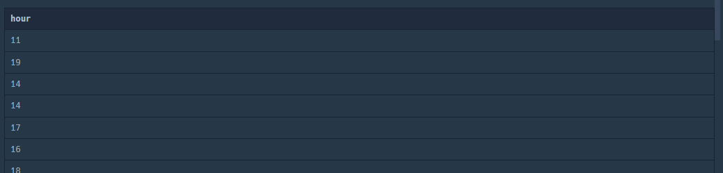 - 별칭 지정 AS을 사용하여 복잡한 필드명을 HOUR로 지정해줍니다.