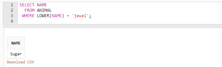 - LOWER()는 함수 안의 글자를 소문자로 출력해줍니다.