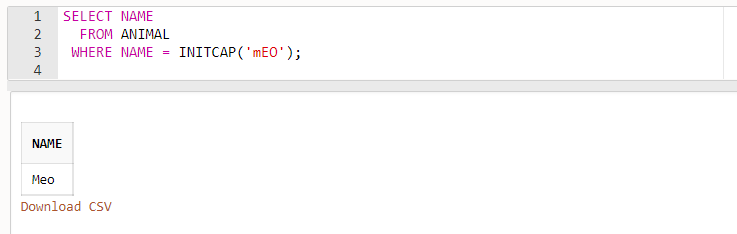 - INITCAP()은 첫 번째 글자만 대문자로 출력하고 나머지 글자는 소문자로 출력해줍니다.