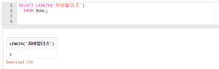 - LENGTH() 함수안에 한글도 사용이 가능합니다.