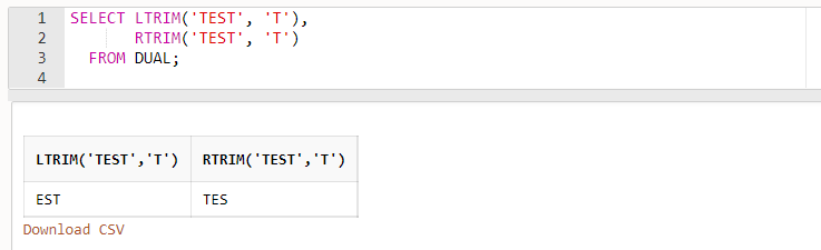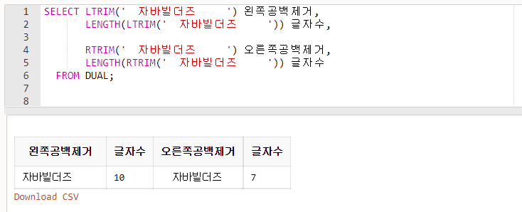- LTRIM()은 왼쪽에서만, RTRIM()은 오른쪽에서만 글자를 잘라냅니다.