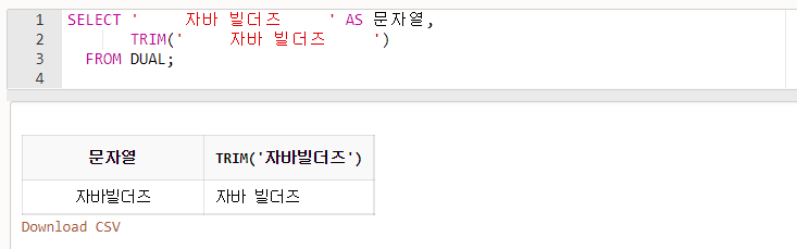 - TRIM()을 사용하면 문자열 양옆의 공백을 제거하여 출력할 수 있습니다.