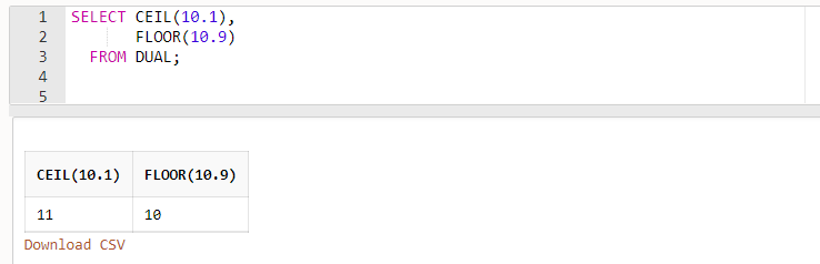 CEIL(), FLOOR() 테스트(https://livesql.oracle.com/)