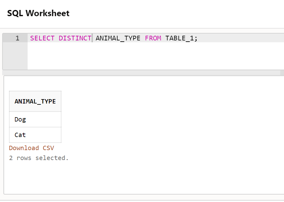 - DISTINCT를 사용하자 중복 데이터가 모두 사라지고 단 두 줄만 나온 것을 확인할 수 있다.