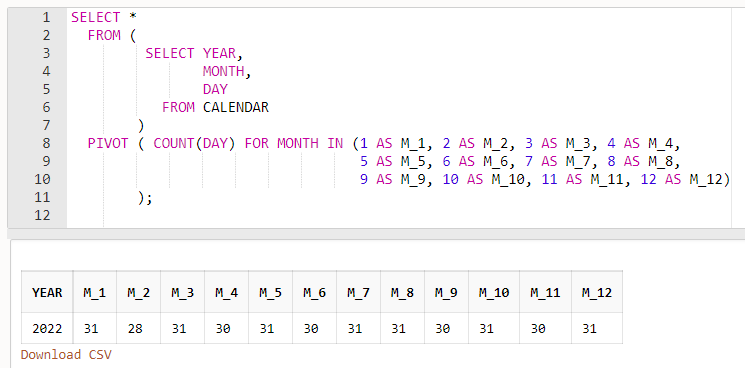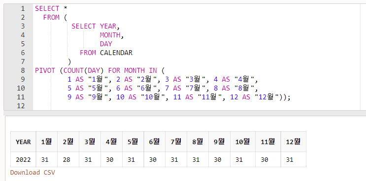 - PIVOT()을 사용하면 데이터가 가로로 출력되는 것을 확인할 수 있습니다.